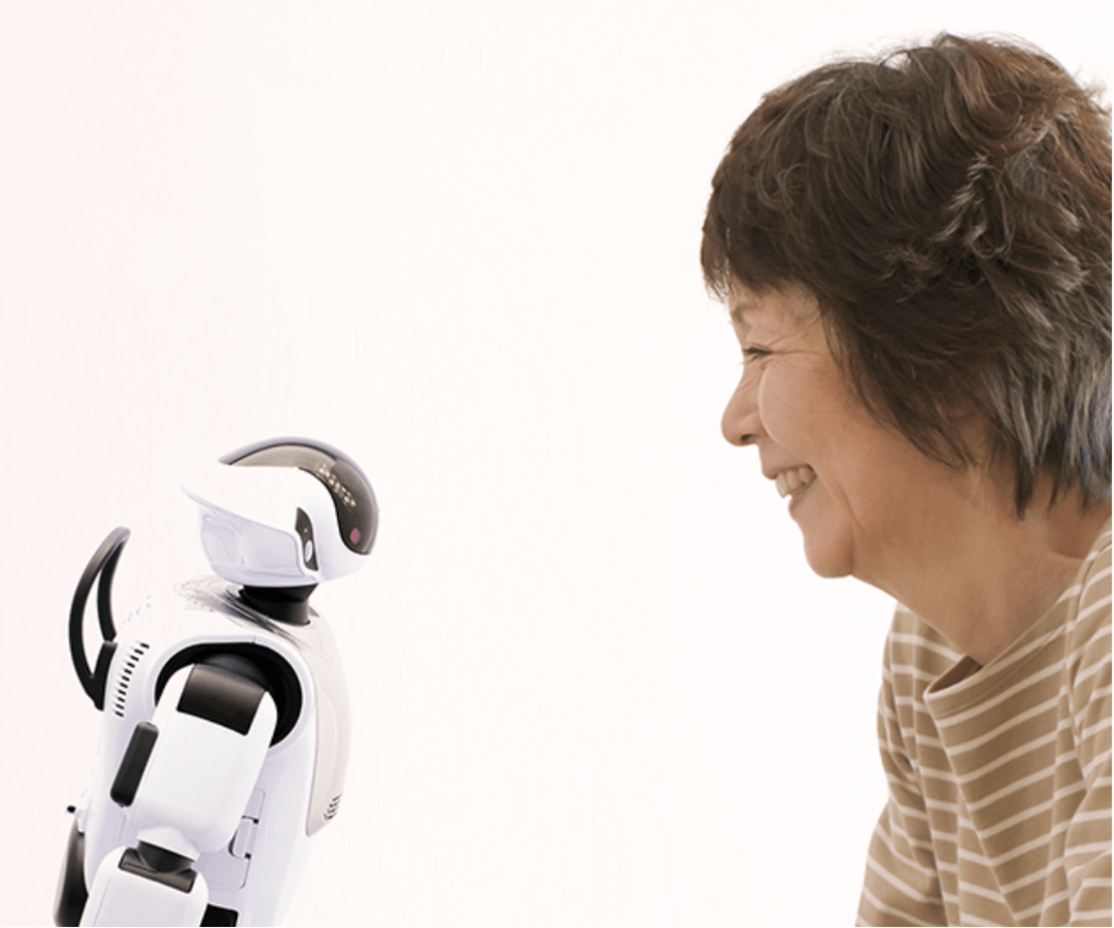 | 具备人工智能,擅长根据对话内容进行交流的人形交流机器人。高度约 40㎝、重量约 1.8kg 可单手操作。仅需放置在眼前就会自主向利用者搭话,十分便利的交流型机器人。以提高利用者 QOL 减轻工作人员的负担为目的开发的PALRO已经导入超过1300家的日本高龄者福祉设施。 |